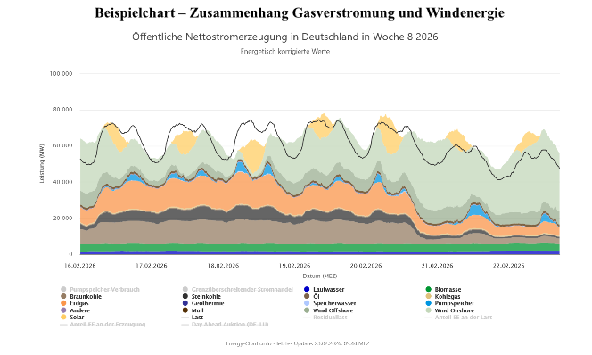 Zudem hat die markante Temperaturerwärmung in Kombination mit einem nicht minder markanten Anstieg der Stromerzeugung aus Windenergie den täglichen Rückgang der Gasreserven in den vergangenen Tagen deutlich reduziert. (siehe Spalte „Trend“).