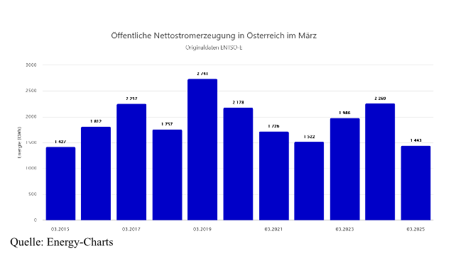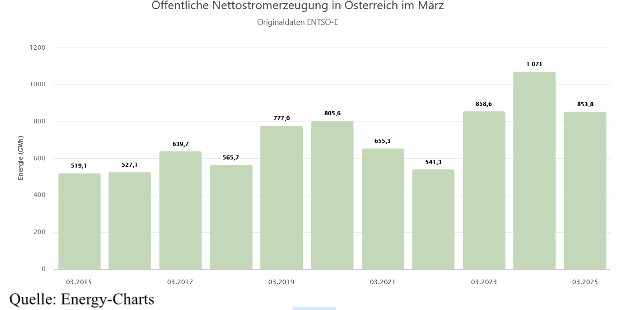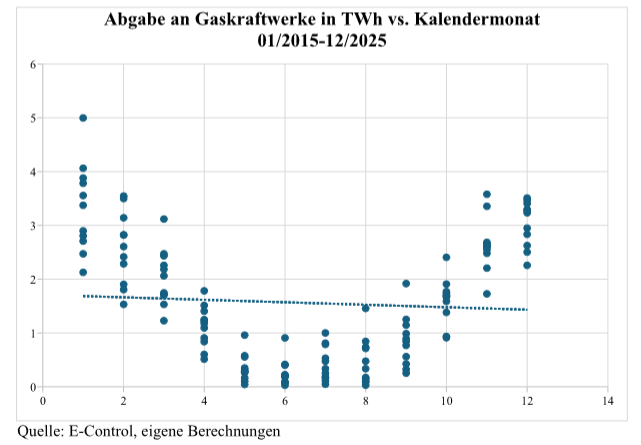 Ein wesentlicher Faktor in Österreich ist die Gasverstromung. Nach dem Ende der Kohleverstromung verbleibt lediglich Erdgas als namhafte witterungsunabhängige Energiequelle. Mit knapp 80% haben Erneuerbare (Wasser, Wind, Strom) in Österreich im internationalen Vergleich einen sehr hohen Anteil an der Stromerzeugung. Diese ist damit stark witterungsabhängig und schwankt dementsprechend stark.